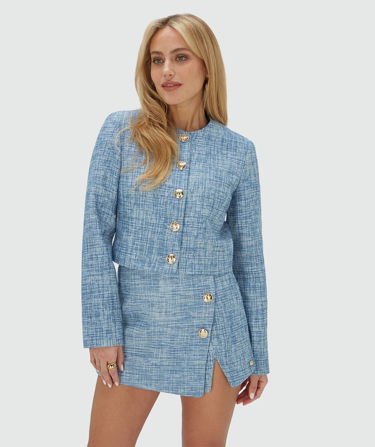 Josh V REMI cropped blazer met lurex - blue bouclé