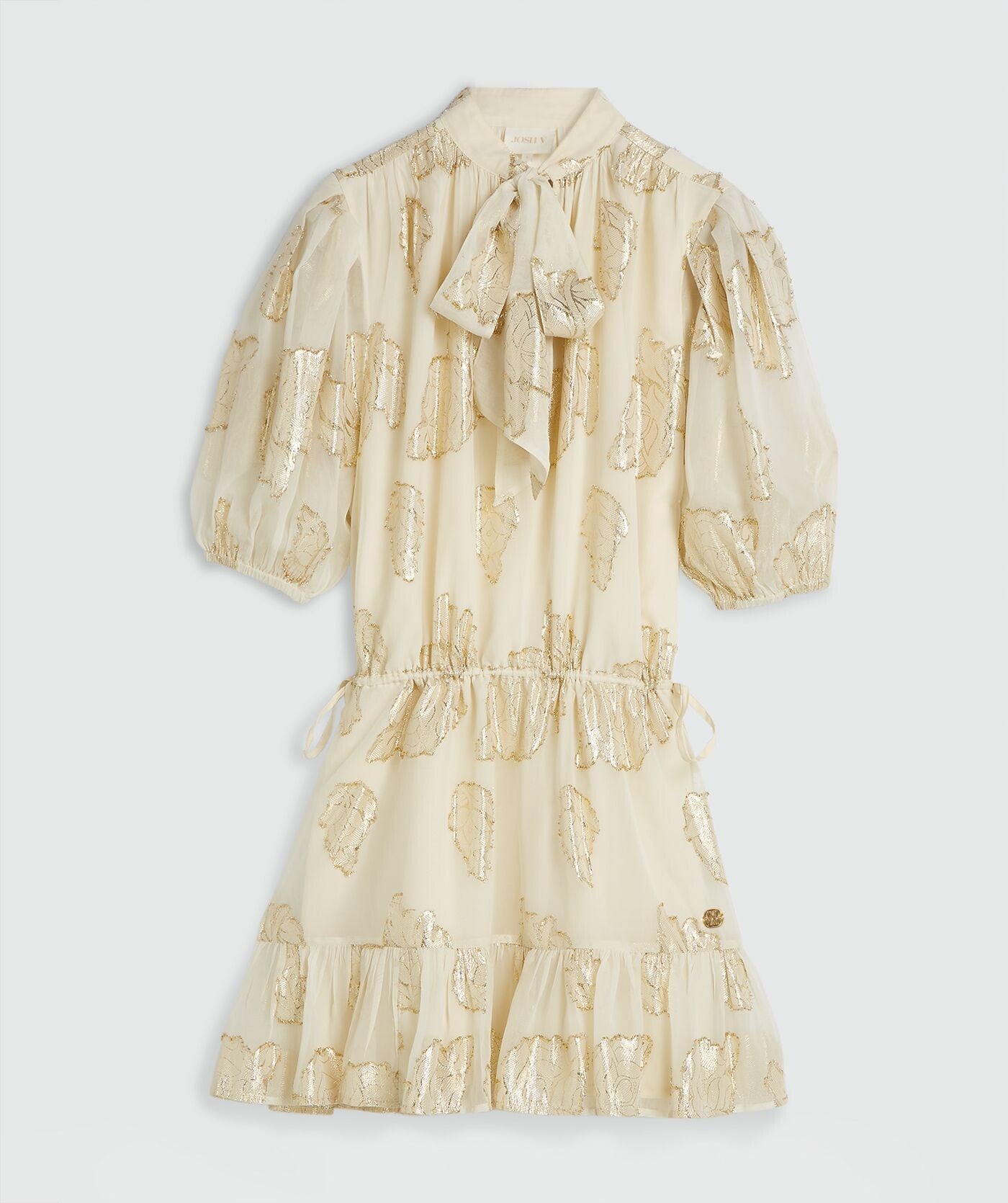 Josh V FIORE regular fit jurk met lurex bloemenprint - creme white